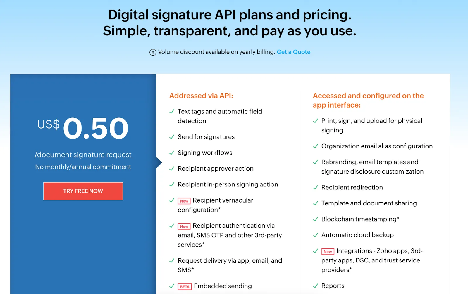 How much does Zoho Sign API cost?