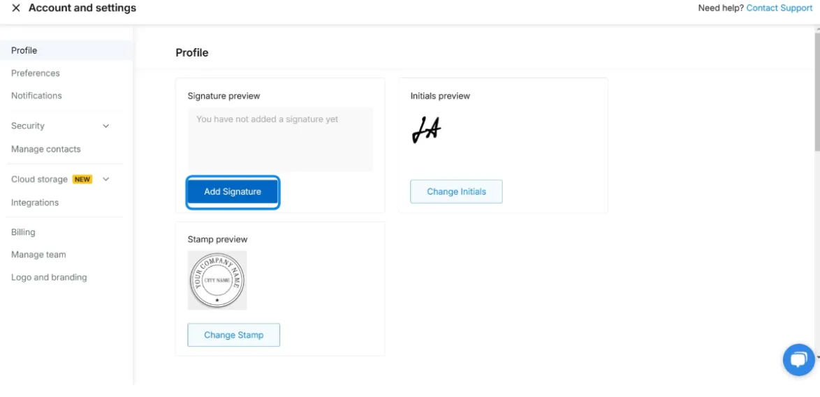 5. Click on the '**Add Signature**' button in the profile section to begin.