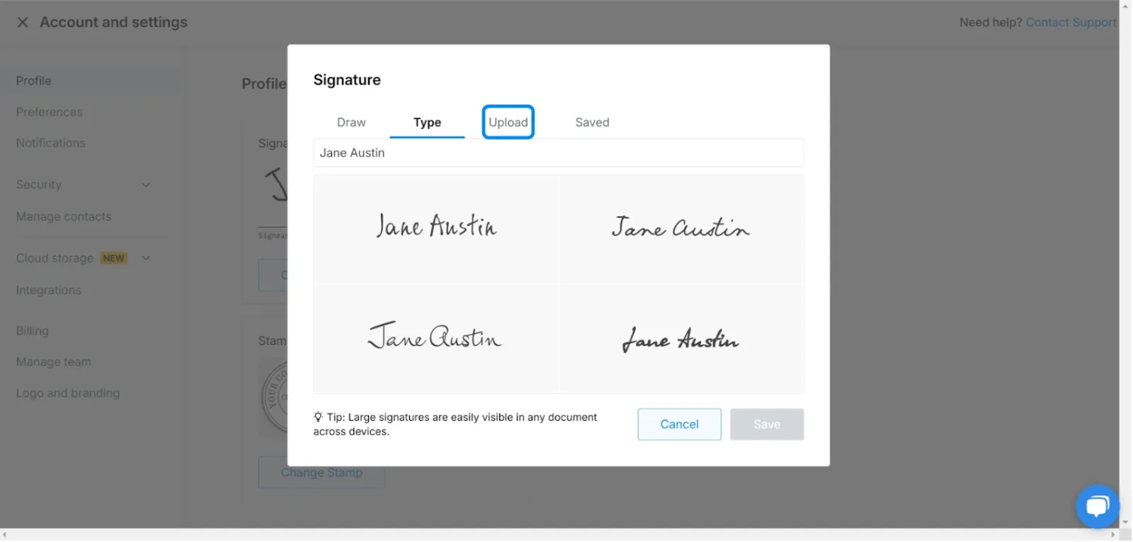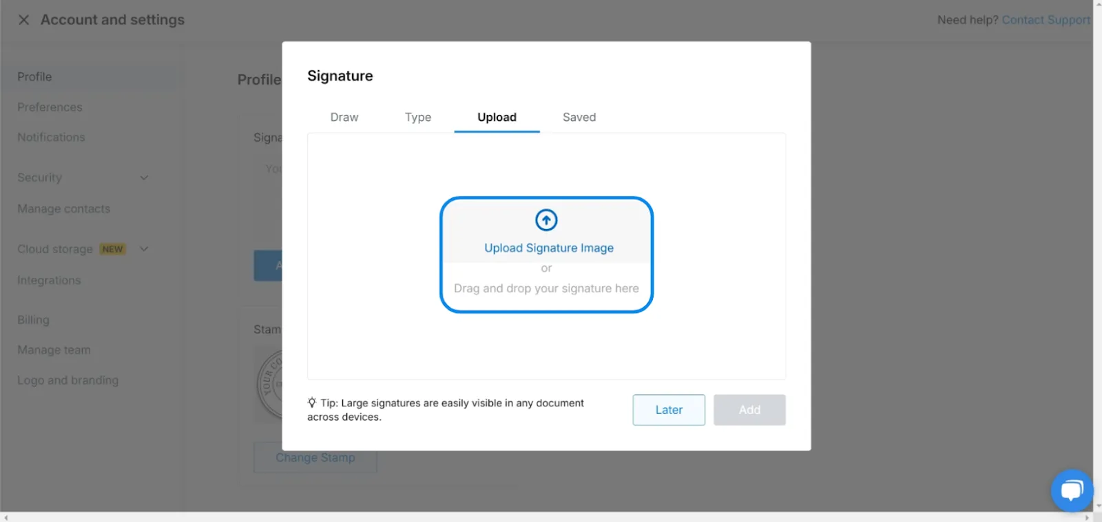 14. If you prefer using your own handwritten signature upload a PNG image from your computer or simply drag and drop it into the upload screen.