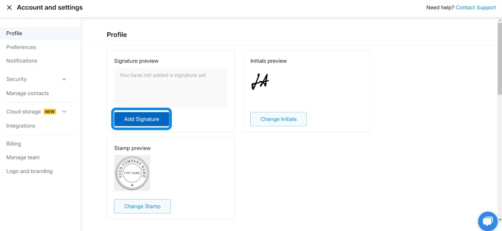 4. Click on the '**Add Signature**' button in the profile section to begin.