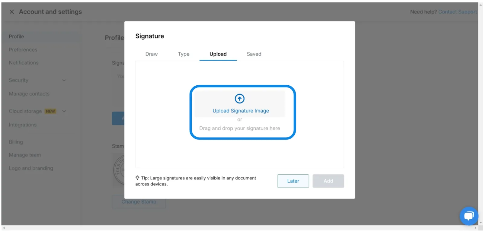 How to upload signature