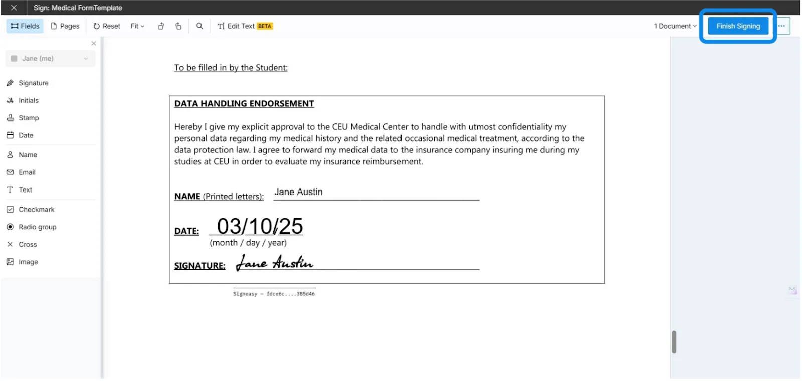 To submit a document as a PDF, first save or export the file in PDF format using your word processor or editing tool. Then, upload it to the desired platform, email it, or share it via a secure link. If you need to sign or complete the document before submitting, you should use a legally valid eSignature platform like Signeasy to fill out and finalize the PDF.